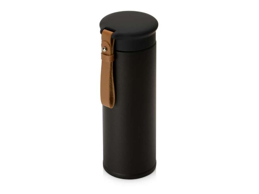 Термос герметично завинчивается на крышку, оснащенную съемным ремешком из качественной ПУ кожи. Крышка имеет прорезиненное покрытие, что создает интересное сочетание текстур в рамках одной модели. Корпус имеет элегантную рельефную поверхность с антискользящим эффектом.