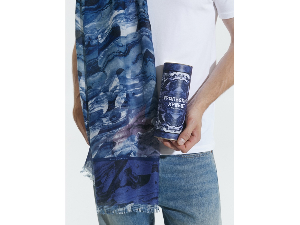 Дизайн шарфа из коллекции Уральский Хребет соотносится с силой и величием Уральских гор и ярким, выраженным мужским характером, который так привлекает женщин.