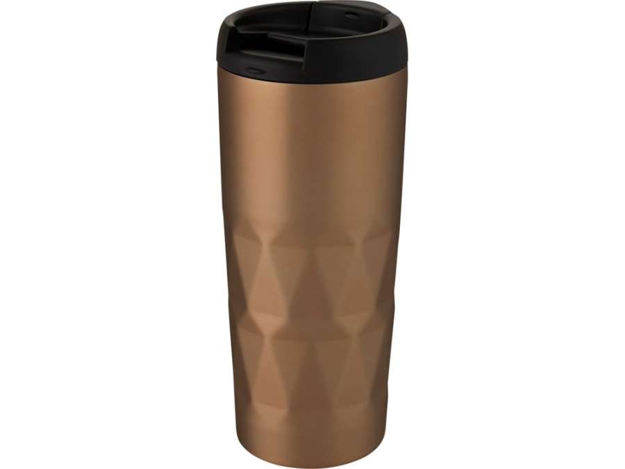 Медная кружка с двойными стенками, вакуумной изоляцией и навинчивающейся крышкой с защитой от проливания со сложным геометрическим дизайном. Благодаря изоляции и нержавеющей стали 18/8 напитки несколько часов остаются горячими или холодными. Без содержания BPA, протестировано и одобрено согласно немецкому законодательству о безопасности пищевых продуктов (LFGB), проверено на содержание фталатов согласно нормам REACH. Объем 450 мл. Рекомендуется мыть вручную. В коробке из переработанного картона.