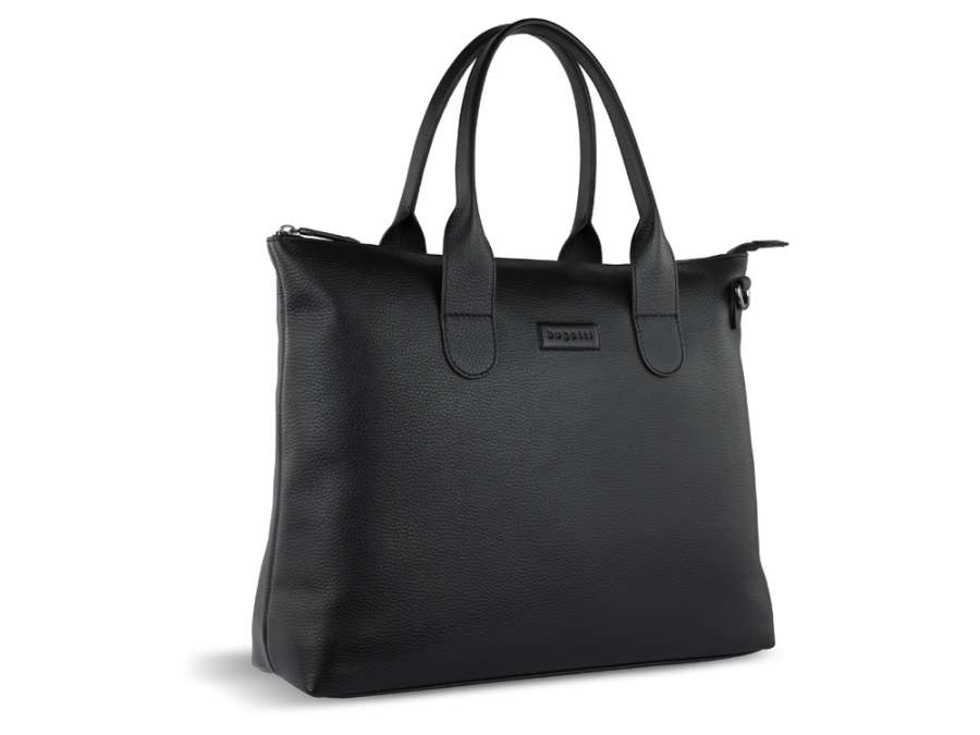Сумка-шоппер BUGATTI Elsa, чёрная, воловья кожа/полиэстер, 46х11х31, 5 см