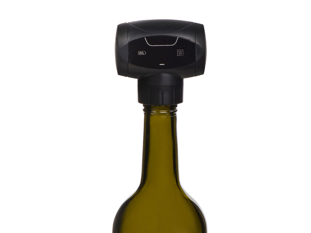 Вакуумная пробка от Master of Wine откачивает воздух из бутылки без вашего участия — необходимо лишь правильно и плотно установить ее на горлышке и нажать на кнопку — устройство автоматически откачает воздух до достижения вакуума, после чего остановится.
