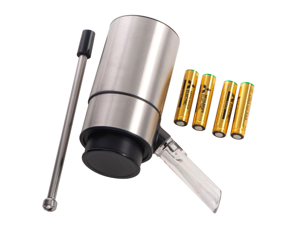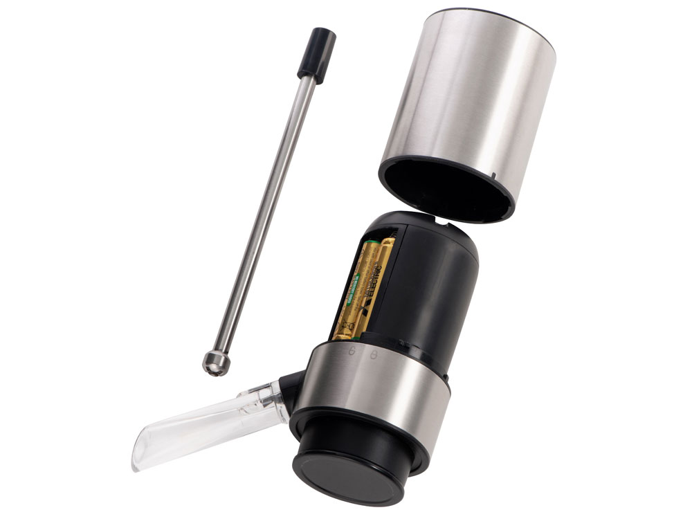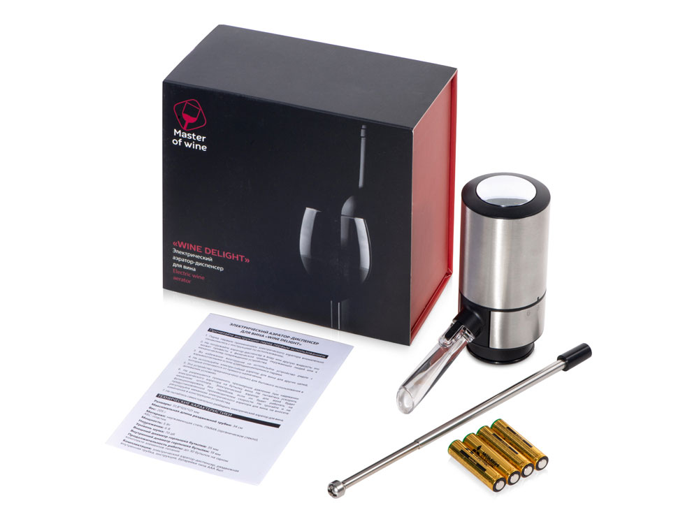 - эффектная подача + полезный аксессуар для ценителей изысканных вин. Комплектность: аэратор, стальная выдвижная трубка, батарейки типа ААА (4 шт.)