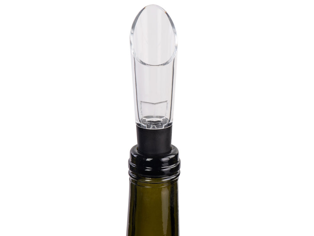 Аэратор вставьте в горлышко бутылки и пролейте через него вино в бокал - вуаля, вино мгновенно насытилось кислородом, да еще и без одной пролитой на скатерть капли!