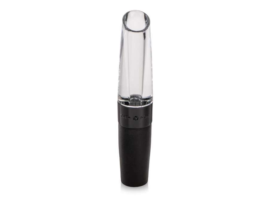 Аэратор имеет два режима, настроить которые вы можете поворотом кольца, перехватывающего корпус посередине. В положении OFF отверстие сбоку закрыто, и Valencia выступает в роли воронки для разлива. В положении ON отверстие открывается, чтобы открыть доступ воздуха сбоку — напиток насыщается кислородом.