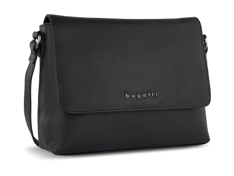 Сумка наплечная женская BUGATTI Bella, чёрная, воловья кожа/полиэстер, 25х8х20 см