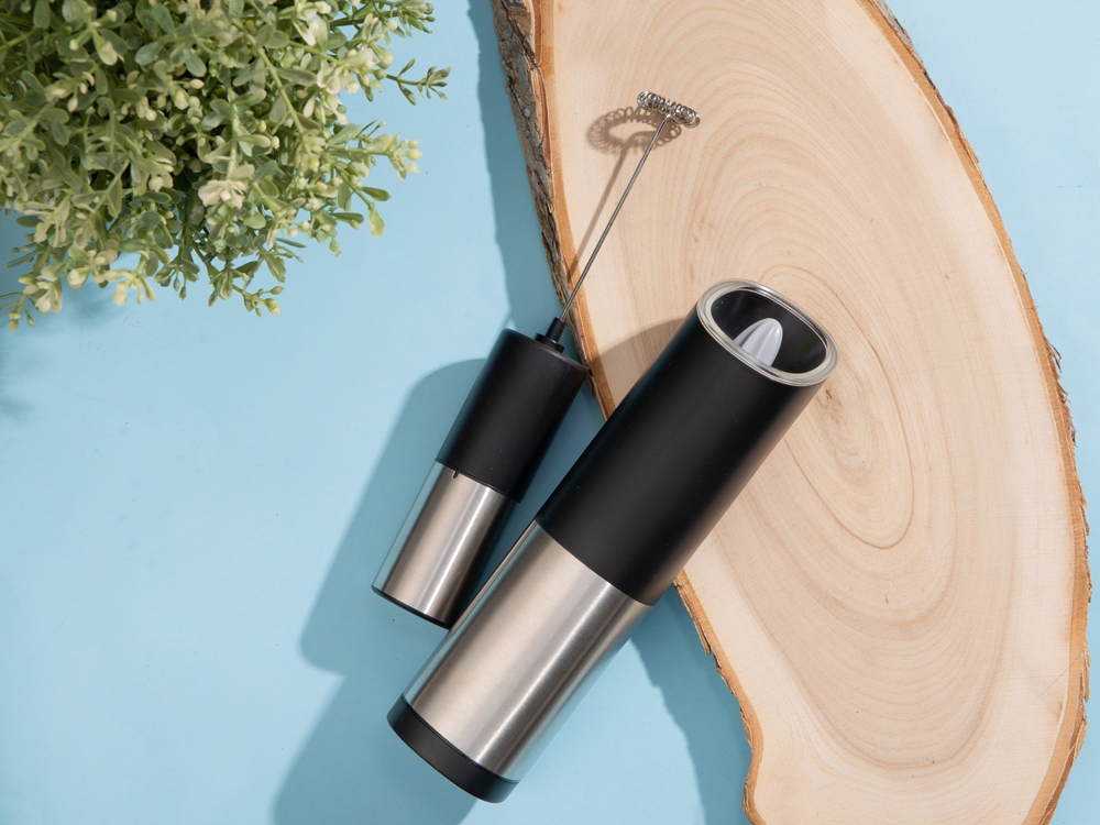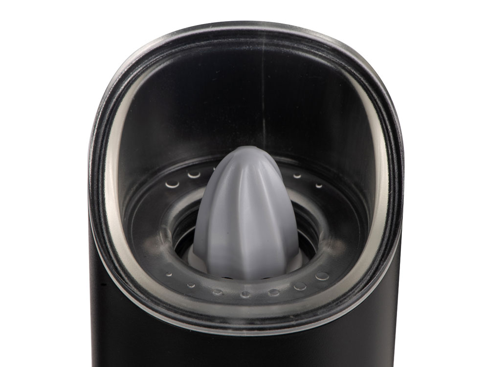 Мельница включается лишь в перевернутом положении, что позволяет снизить расход батареек и решает проблему случайного срабатывания устройства. Эргономичный корпус выполнен из нержавеющей стали и текстурного АБС-пластика.