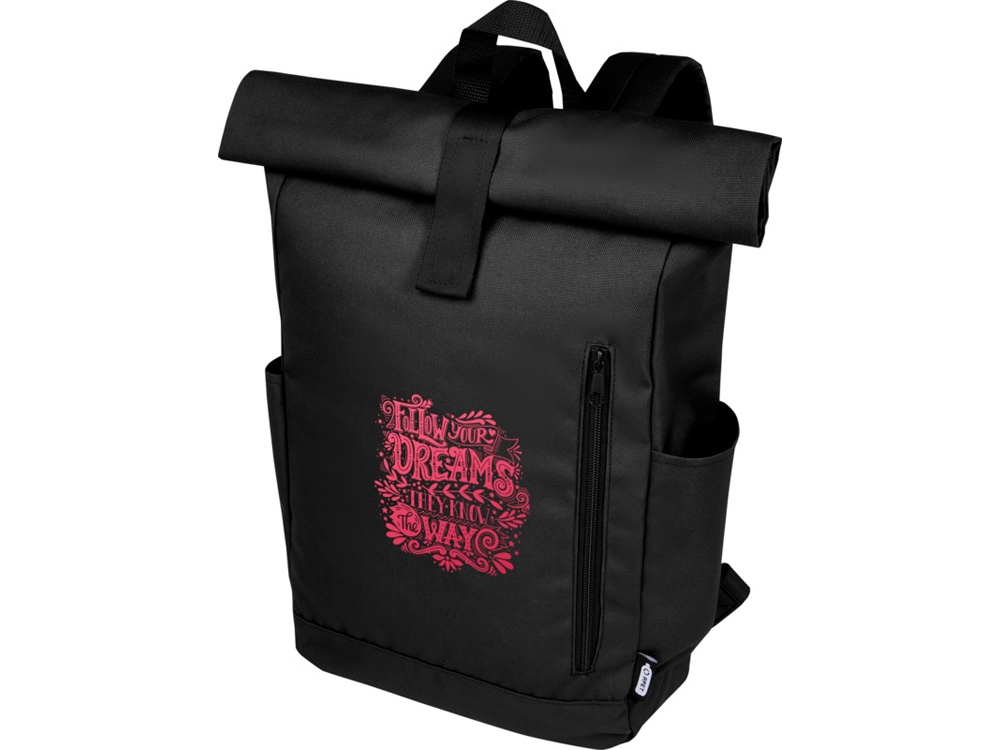 Рюкзак Byron 15, 6 объемом 18 л со скручиваемым верхом, изготовленный из переработанного ПЭТ по стандарту GRS, черный