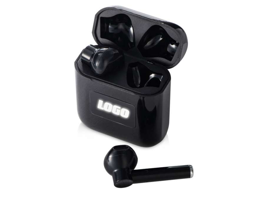 Беспроводные наушники Twinkles от Evolt — почти готовый мерч, который лишь ждет, когда вы забрендируете его: при гравировке на зарядном кейсе ваше лого будет подсвечиваться!