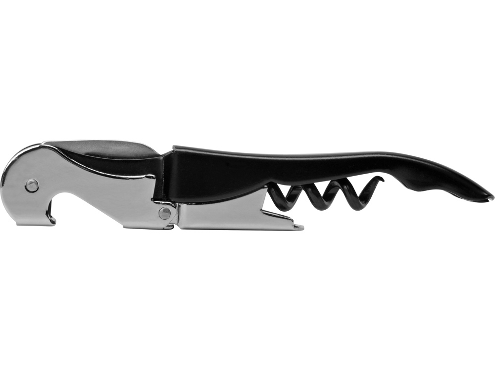 Штопор с буравчиком, открывалкой для бутылок и ножом для срезания фольги. Нержавеющая сталь.