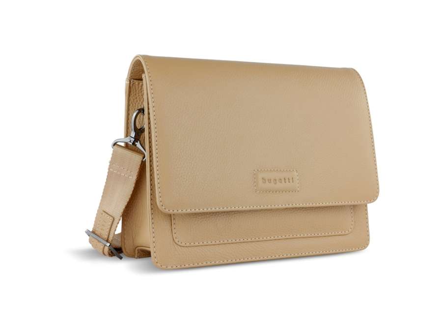 Сумка через плечо женская BUGATTI Elsa, песочного цвета, воловья кожа/полиэстер, 25х8, 5х20 см