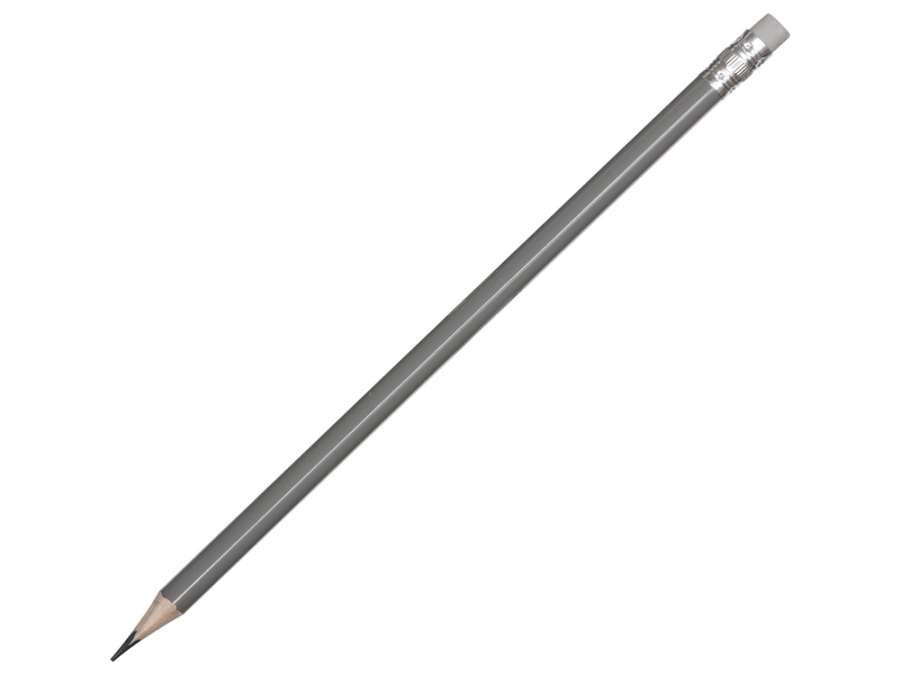 Трехгранный чернографитовый карандаш с ластиком будет очень полезным и недорогим подарком. Карандаш заточен.