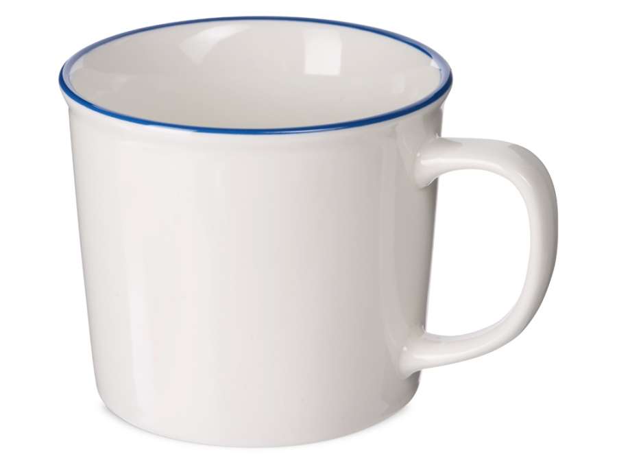 Кружка из костяного фарфора с выраженным рельефным ободком, окаймленным цветной контрастной полосой. Цвет полосы можно органично сочетать с цветом нанесенного логотипа, что придаст дизайну конечного продукта цельность облика.