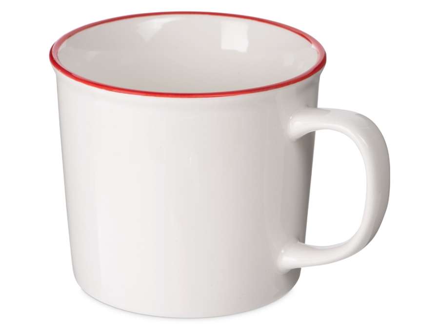 Кружка из костяного фарфора с выраженным рельефным ободком, окаймленным цветной контрастной полосой. Цвет полосы можно органично сочетать с цветом нанесенного логотипа, что придаст дизайну конечного продукта цельность облика.