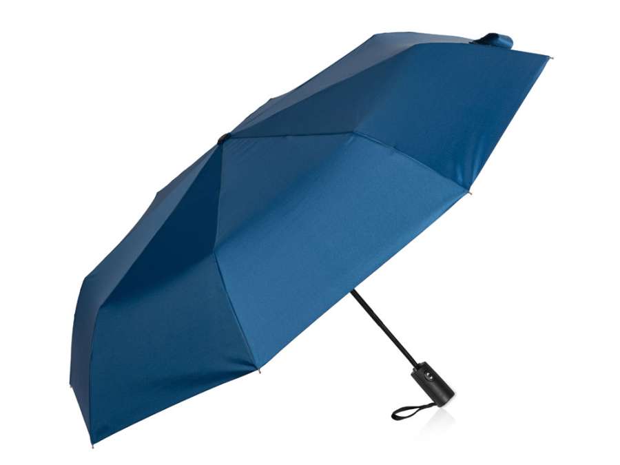 Купол зонта выполнен из переработанного пластика. Гибкие спицы из стекловолокна делают зонт стойким к порывам ветра. Удобная ручка софт тач. Фиксирующая купол застежка на липучке шириной 3 см - дополнительная опция для нанесения вашего логотипа.