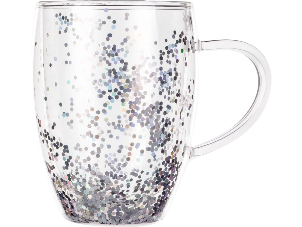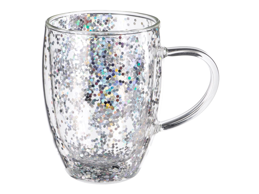 Кружка с двойными стенками с блестками, 360 мл, серебристый
