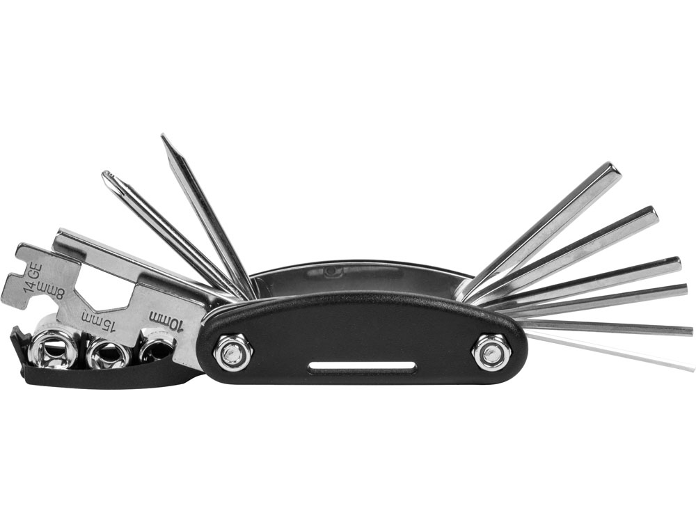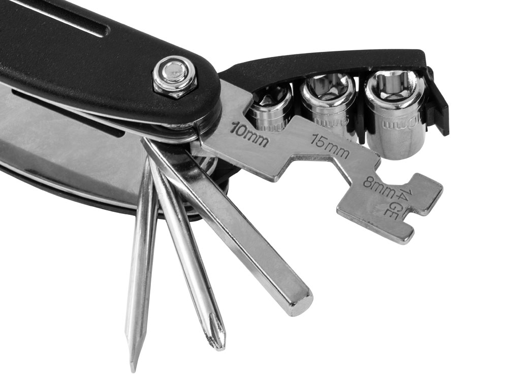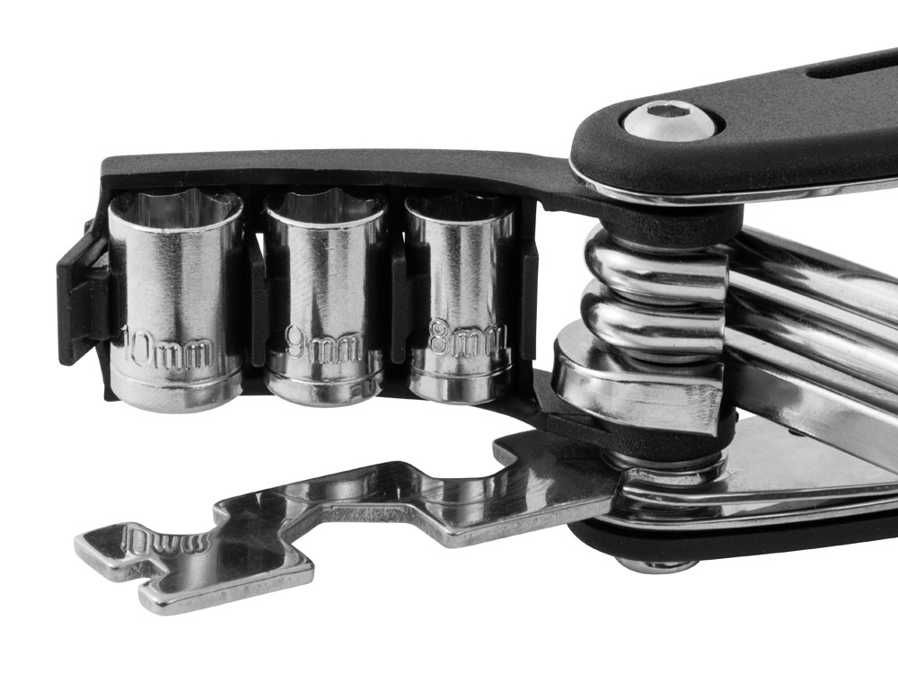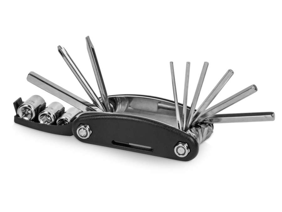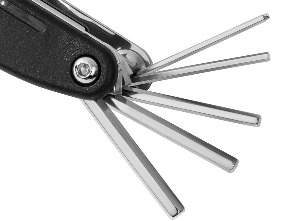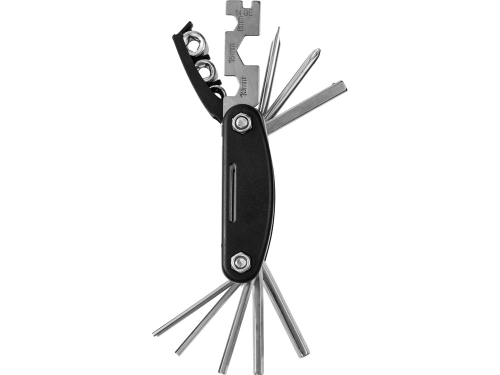 Многофункциональный инструмент от Roq сочетает в себе целых 16 функций: 6 шестигранных ключей (№ 2, № 2, 5, № 3, № 4, № 5, № 6), 4 ключа (8 мм, 10 мм, 15 мм, 14GE), адаптер, крестообразную отвертку, шлицевую отвертку и 3 насадки (№ 8, № 9, № 10).
