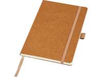 Блокнот из переработанной кожи с эластичным ремешком, петлей для ручки, закладкой, карманом из крафт-бумаги и 80 линованными листами кремового цвета из бумаги, переработанной по стандарту (70 г/м²). Обложка из переработанной кожи является стильным и износостойким верхним слоем, защищающим страницы внутри. Одним из преимуществ использования блокнота из переработанной кожи является комбинация стиля и экологичности. Уникальная текстура и внешний вид переработанной кожи придают каждому блокноту отличительный характер и индивидуальность.