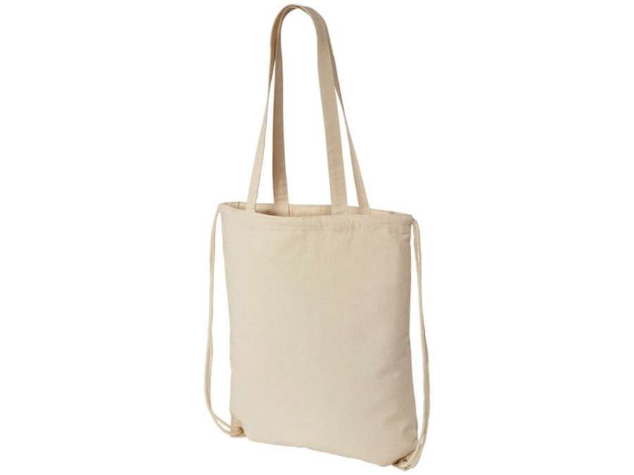 Многофункциональный хлопковый мешок с лямками и длинными ручками, который можно носить в качестве сумки для покупок или рюкзака. Большой основное отделение закрывается затяжкой- шнурком.