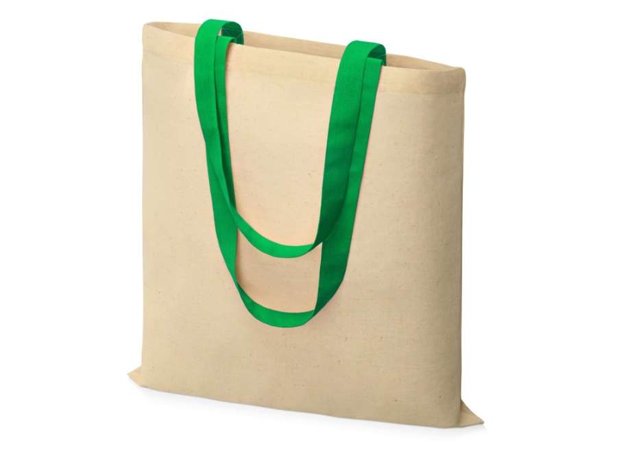 Хлопковая сумка c цветными ручками удобна для покупок благодаря легкости и вместительности. Высота ручек 29 см.