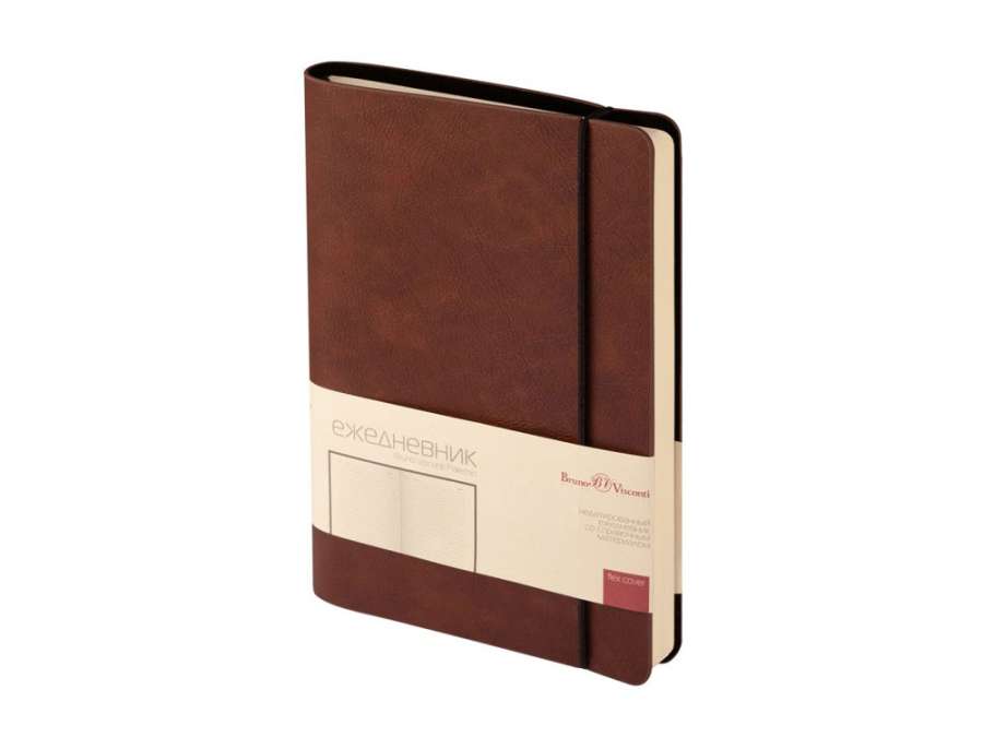 Отличительной особенностью ежедневника является горизонтальная, скрепляющая обложку и блок, тоненькая резинка. Оригинальное решение позволяет раскрывать ежедневник на 180 градусов и вести записи у самого края корешка. Для фиксации второй резинки, не позволяющей ежедневнику раскрываться, предусмотрена выемка на обложке. Обложка тонка, но фактурность придает ей элемент брутальности, а бархатистое нанесение на ее оборотной стороне- благородство и статусность. Картонный карман для визиток, записок, бумаг – функциональная деталь и приятная дополнительная опция. Бумажный блок изготовлен из бумаги бежевого цвета, плотностью 70 г/кв. м и содержит 272 страницы, 23 из которых справочная информация.