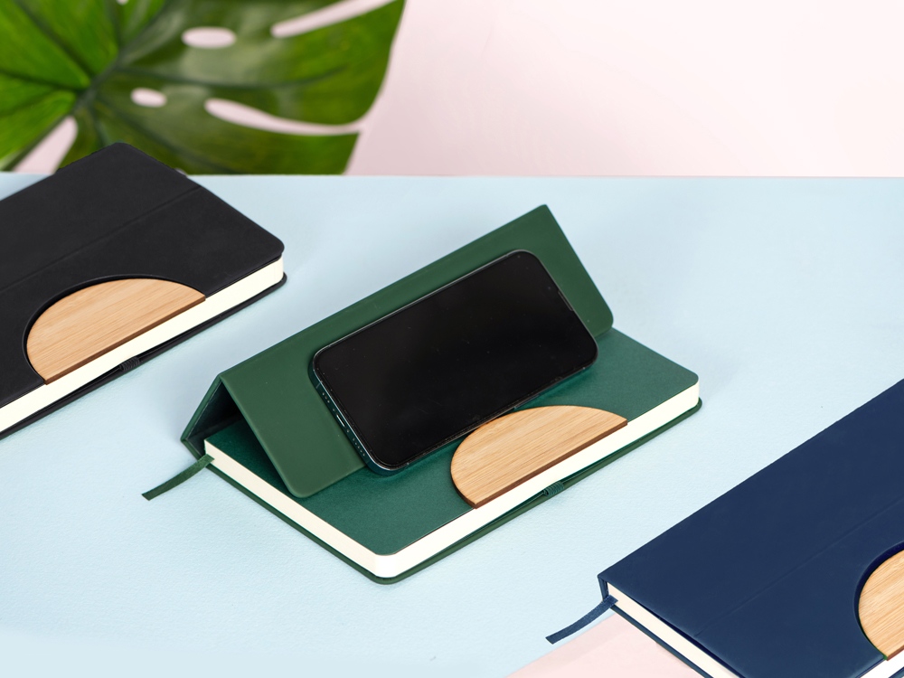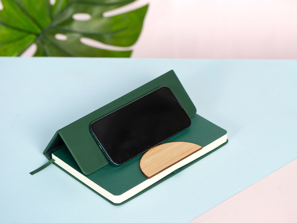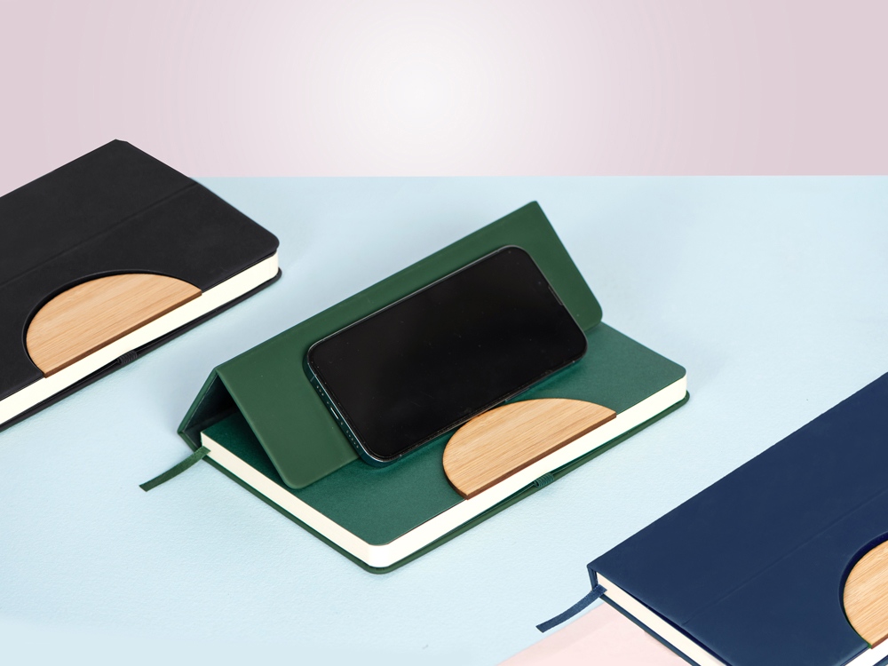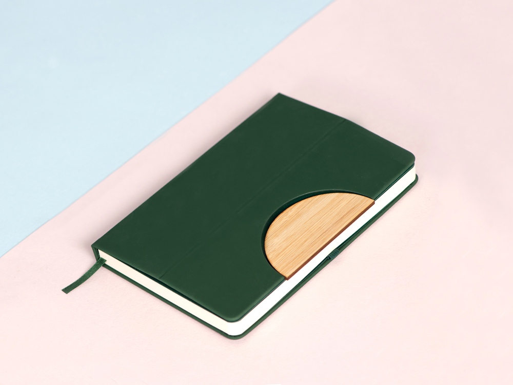 Обложка, выполненная из экокожи с покрытием Soft Touch, создает приятные тактильные ощущения при соприкосновении с ежедневником. Украшает обложку деревянный элемент и вырубка в форме полукруга. Ну, а вишенка на торте – мягкая линия сгиба в центре обложки, позволяющая использовать ежедневник в качестве подставки под телефон. А маленькая петля из резинки – отличное решение для фиксации шариковой ручки, она всегда будет под рукой. Есть еще одна удобная деталь ежедневника - ляссе в цвет обложки для быстрой навигации.