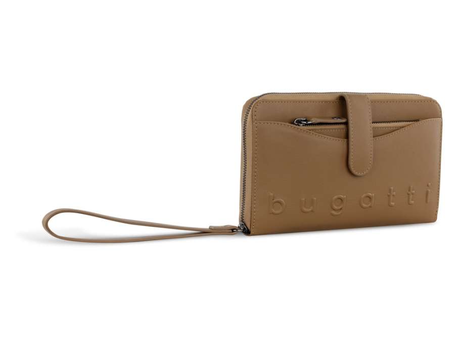 Кошелёк женский BUGATTI Daphne с ключницей, коньячный цвет, воловья кожа/полиэстер, 19х3х11 см