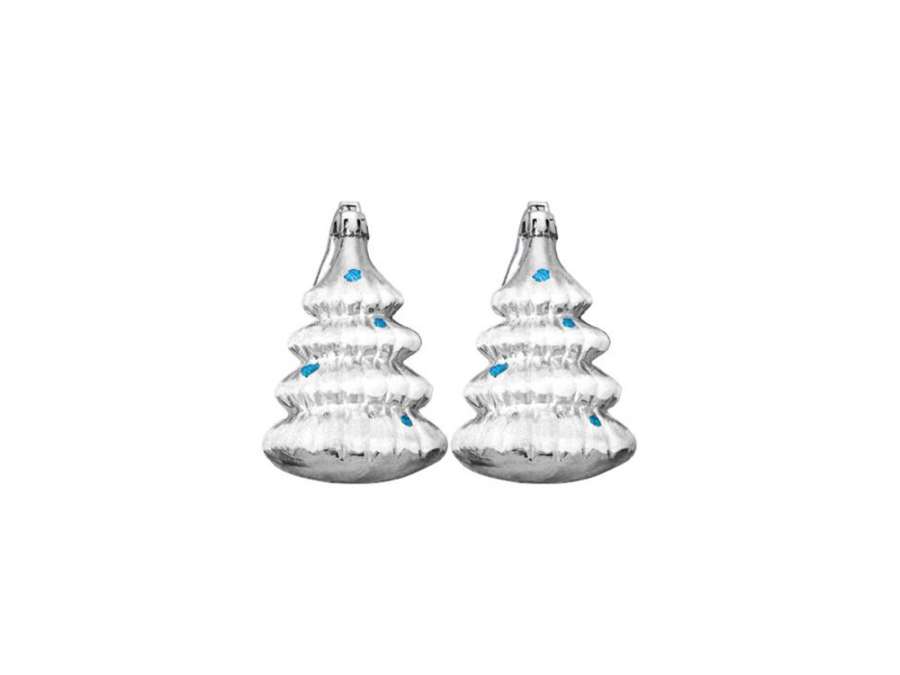 Новогодние украшения в оригинальной форме елочки будут отлично смотреться на вашей ели. Серебряный цвет игрушек делает атмосферу радостнее и праздничнее. Такие украшения будут красиво смотреться как на белой, так и на зеленой хвое. В набор входят 2 елочных игрушек, которые выполнены из пластика - легкого и прочного материала, поэтому они будут красоваться на вашей елке не один год. Такой набор послужит отличным подарком для ваших близких.