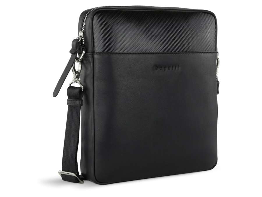 Сумка наплечная мужская BUGATTI Comet, чёрная, воловья кожа/полиэстер, 23, 5х5х26 см