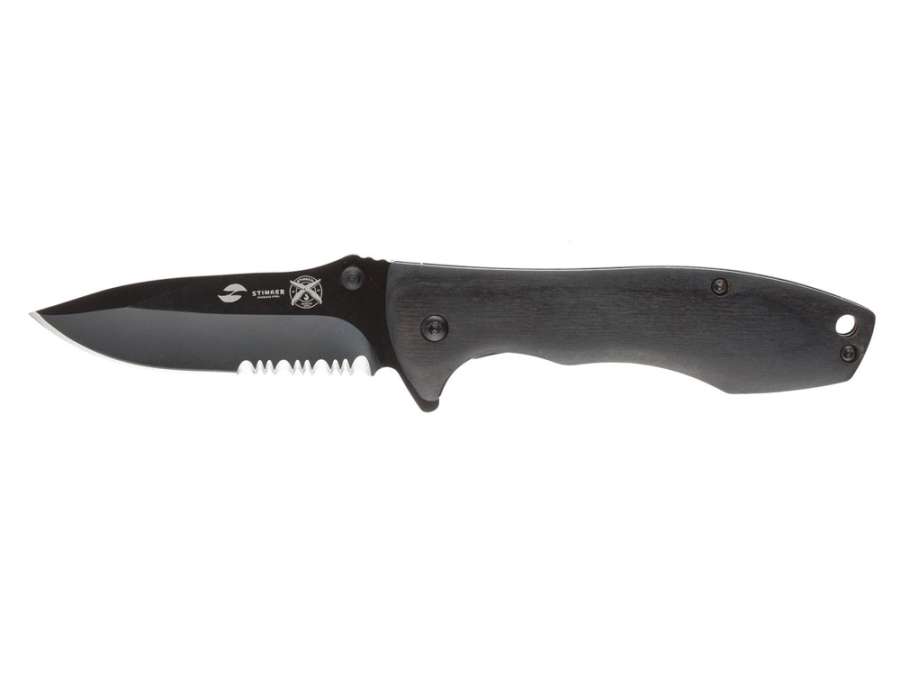 Нож складной Stinger, 80 мм, (чёрный), материал рукояти: сталь/дерево пакка (чёрный)