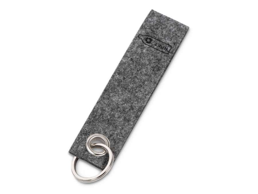 Фетровый брелок натурального серого цвета, сделанный из переработанных материалов (rPET-фетр). Отверстие для металлического кольца окантовано металлическим ободком, который продлит срок использования изделия. Брелок отлично подходит для тех, кто заботится о природе.