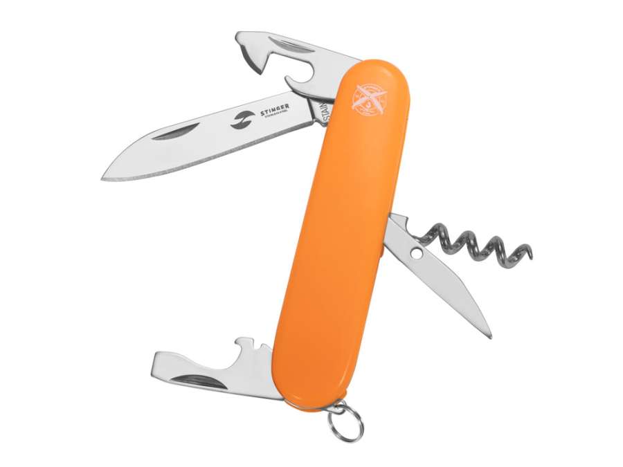 Нож перочинный Stinger, 90 мм, 10 функций, материал рукояти: АБС-пластик (оранжевый)