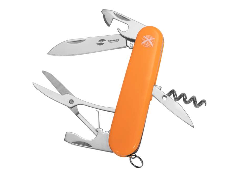 Нож перочинный Stinger, 90 мм, 11 функций, материал рукояти: АБС-пластик (оранжевый)