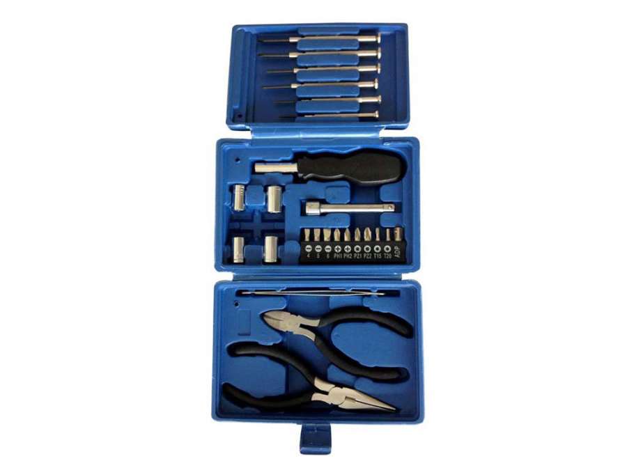 Набор инструментов на 25 предметов STINGER W0414 поставляется в необычном трёхстворчатом пластиковом кейсе насыщенного синего цвета. Входящие в комплект инструменты позволят без труда решать самые разные задачи по ремонту в доме или починке техники. Все инструменты изготовлены из высококачественной закаленной углеродистой стали с хромированным покрытием, рукоятки выполнены из углепластика чёрного цвета. Этот материал не скользит и гарантирует удобное положение в руке.