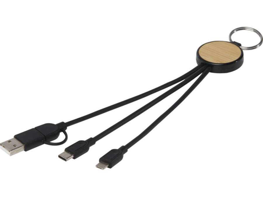 Кабель для зарядки Tecta 6 в 1 из переработанного пластика/бамбука с брелком, сплошной черный