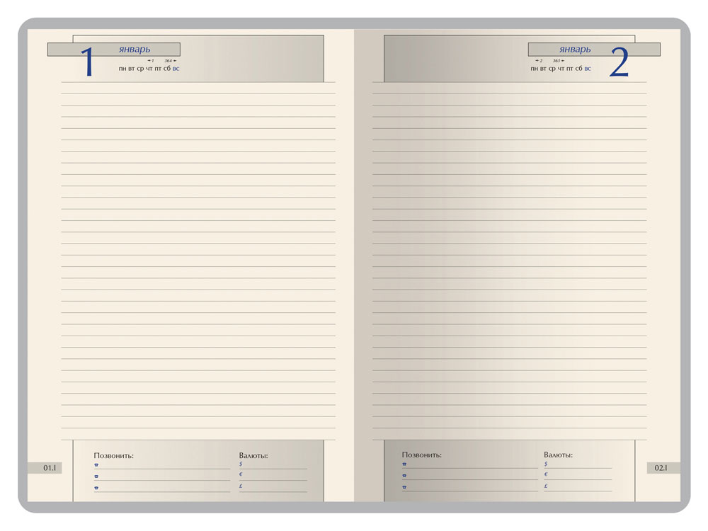 • удобно организованный полудатированный блок из бежевой бумаги плотностью 70 г/кв. м, с линовкой серого цвета;