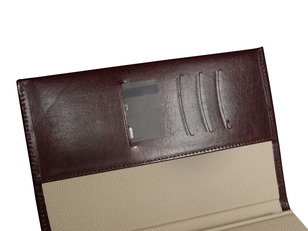 • вырубка под пластиковые карты, визитки с внутренней стороны обложки;