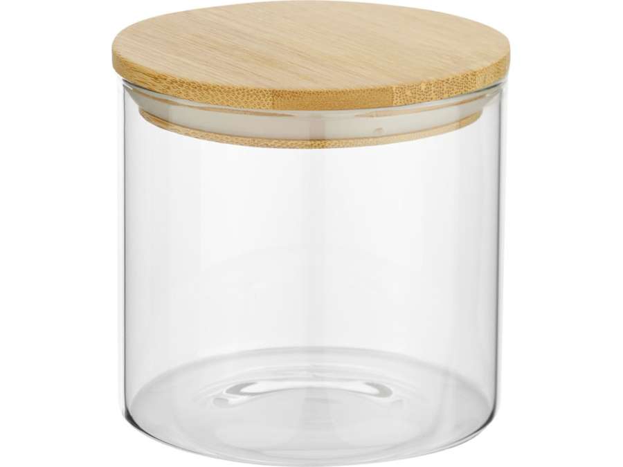 Небольшой пищевой контейнер из стекла с бамбуковой крышкой. Он сочетает в себе преимущества стекла, которое является безопасным и прочным материалом, с возобновляемыми свойствами бамбука. Стеклянный контейнер (без крышки) можно использовать в микроволновой печи и посудомоечной машине. Упакован в коробку из крафт-бумаги вторичной переработки. Емкость: 320 мл.