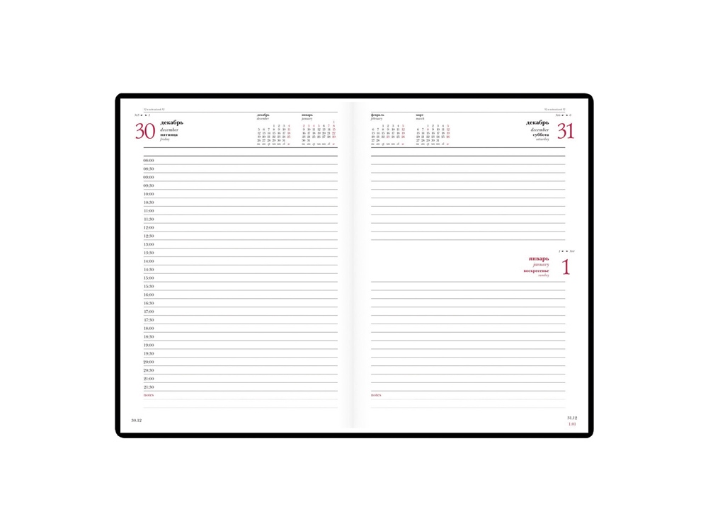 Ежедневник датированный на 2026 год. Его обложка со скруглёнными уголками и с отстрочкой по периметру в цвет выполнена из искусственной кожи нежной и приятной на ощупь.