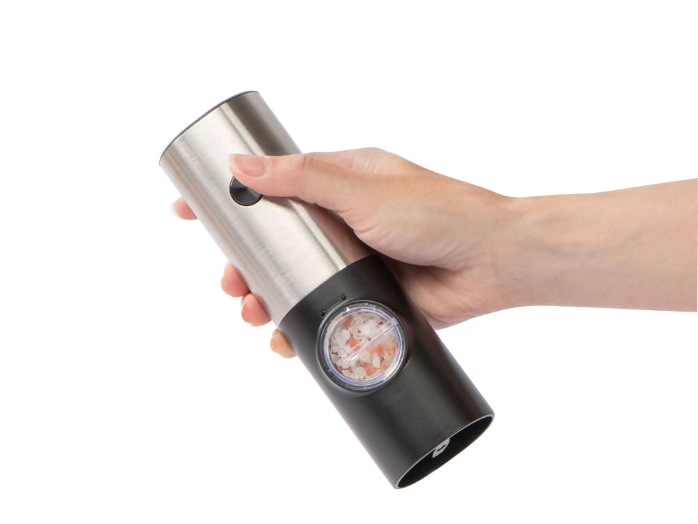 Электрическая мельница Grind от Eat& Bite Select подходит для измельчения крупной соли, перца и других специй, например, таких как гвоздика, тмин или кориандр. Для этого достаточно просто нажать на круглую кнопку на корпусе устройства. Преимуществом добавления в блюда только что смолотых пряностей является сохранение их вкуса и аромата, которые не потеряются в процессе длительного хранения в уже измельчённом виде.