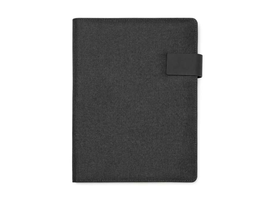 Многофункциональная папка формата А4 из 600D RPET с магнитной застежкой. В комплект входит съемный блокнот на 30 листов. 4 внутренних кармана и держатель для ручек.