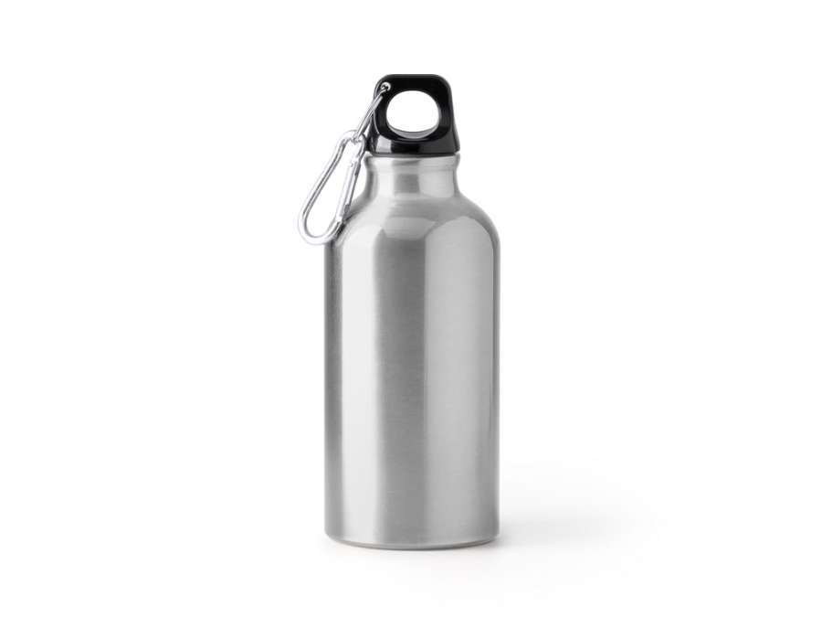 Бутылка из переработанного алюминия с карабином. Емкость 400 мл. Карабин для более удобной переноски бутылки, не рекомендуется для лазания.