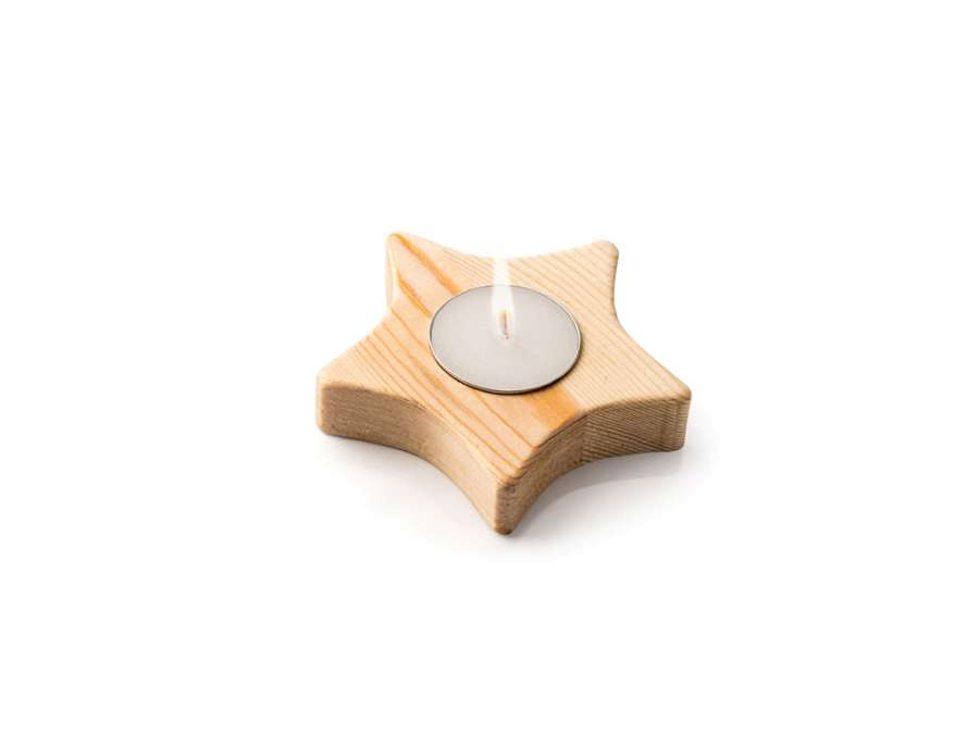 Свеча MAKA на деревянной подставке, звезда, натуральный