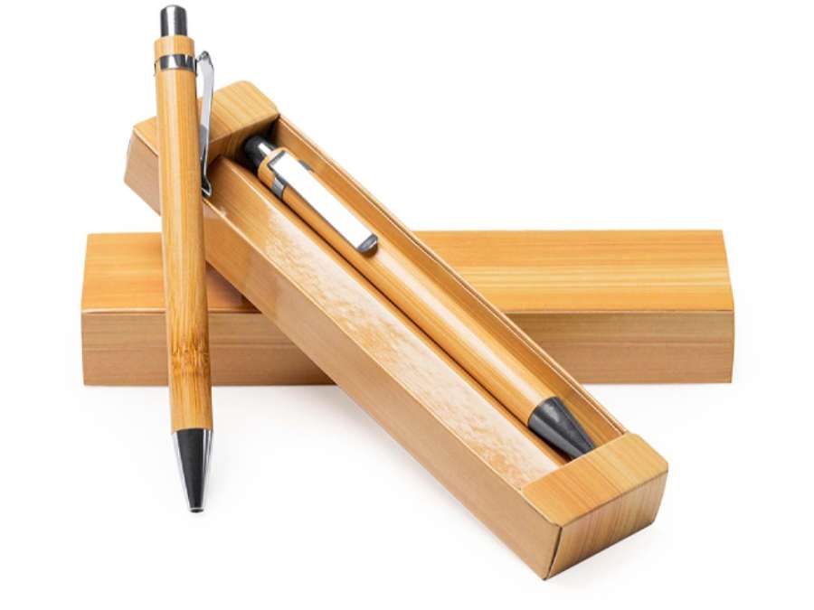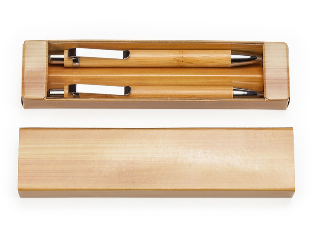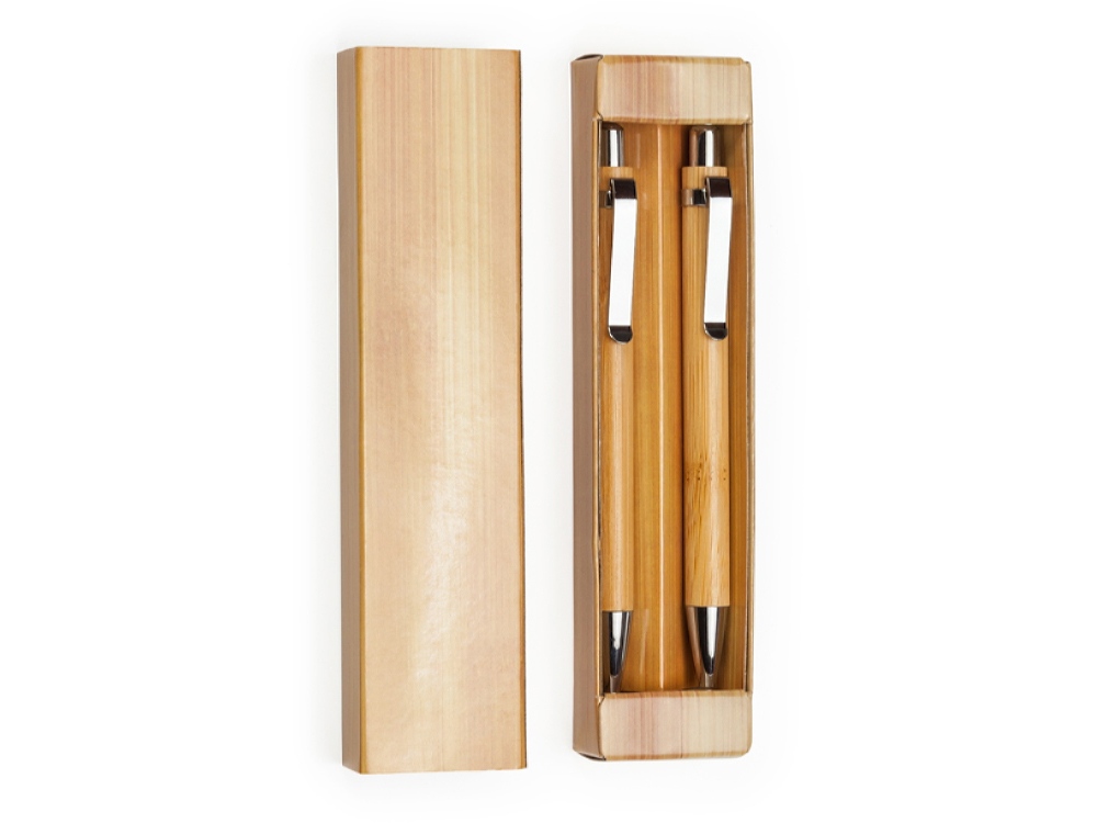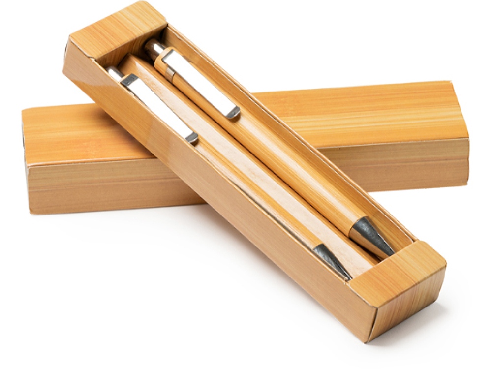 Набор из бамбуковой ручки и механического карандаша. Синие чернила. Комплектность: ручка шариковая, карандаш механический