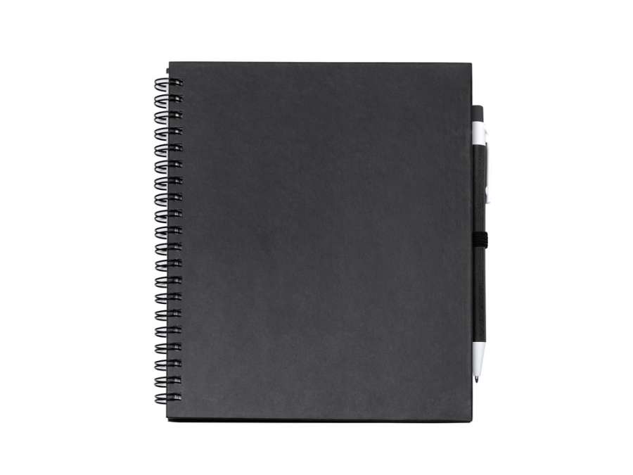 Блокнот на спирали с простыми листами и держателем для ручек. Твердая обложка и ручка из переработанного картона. 70 листов. Комплектность: блокнот, ручка