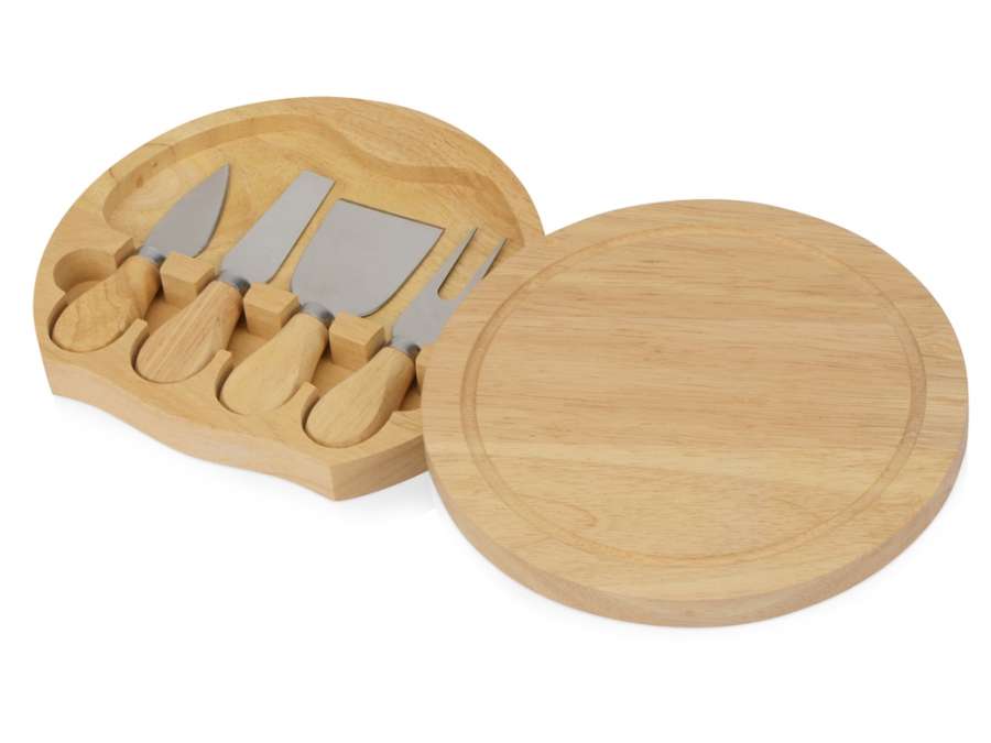 Подарочный набор для сыра в деревянной упаковке включает в себя три вида ножей и одну вилку. С помощью приборов можно нарезать сыры разных сортов. Набор упакован в деревянную подарочную коробку, которую можно использовать для хранения этих инструментов. Удобный поворотный механизм позволяет использовать крышку в качестве разделочной доски. Специальные выемки в коробке фиксируют приборы в безопасном положении.