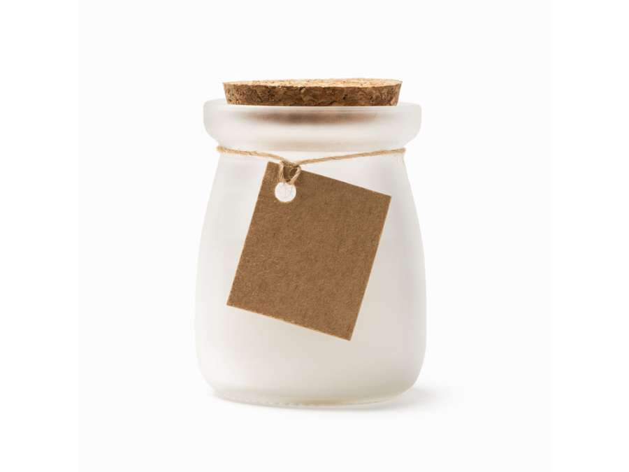 Ароматическая свеча в подсвечнике с пробкой. Аромат ванили. В комплект входит крафт-ярлык для нанесения 3 х 3, 5 см.