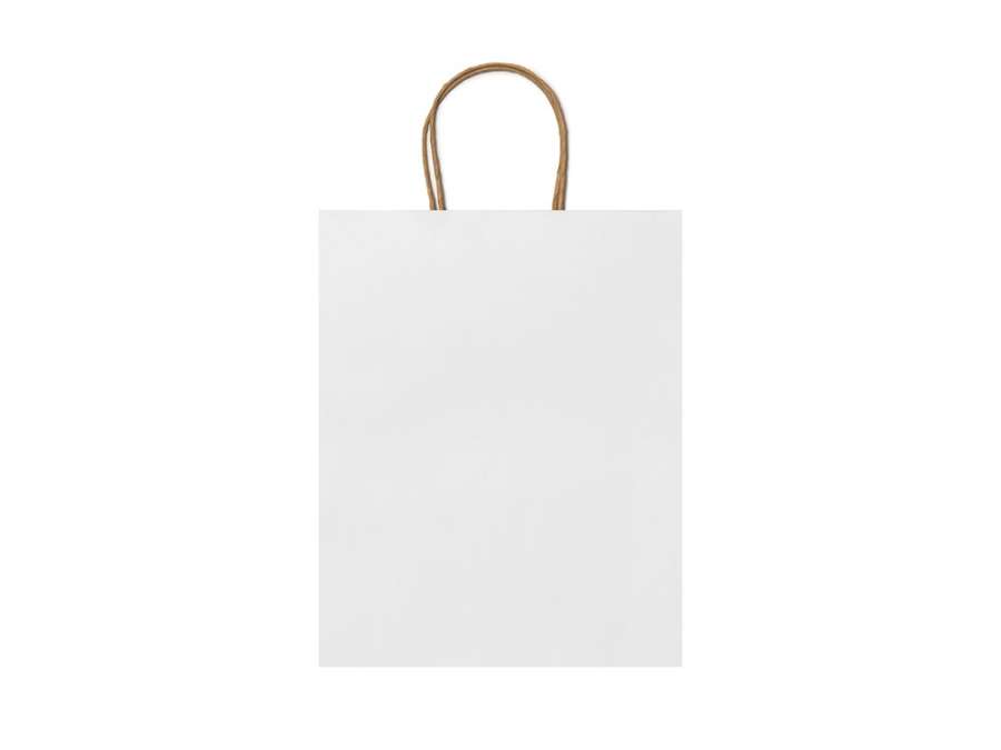 Бумажный пакет 110 г/кв. м натуральной отделки с усиленными короткими ручками витого дизайна.