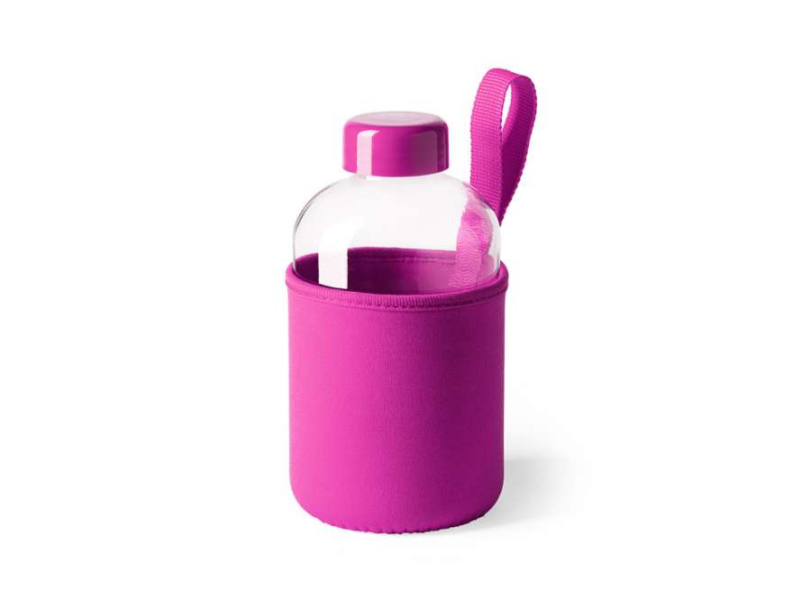 Бутылка стеклянная KASTER в неопреновом чехле, 600 мл, фуксия