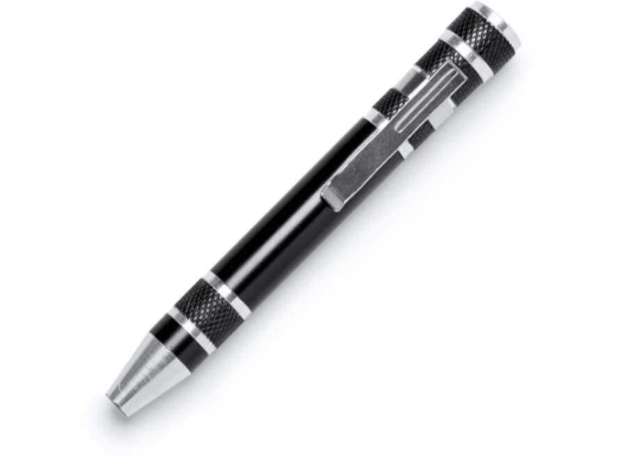 Алюминиевый мультитул в форме ручки. В комплекте 8 головок бит Комплектность: насадки для отвертки- 8 шт