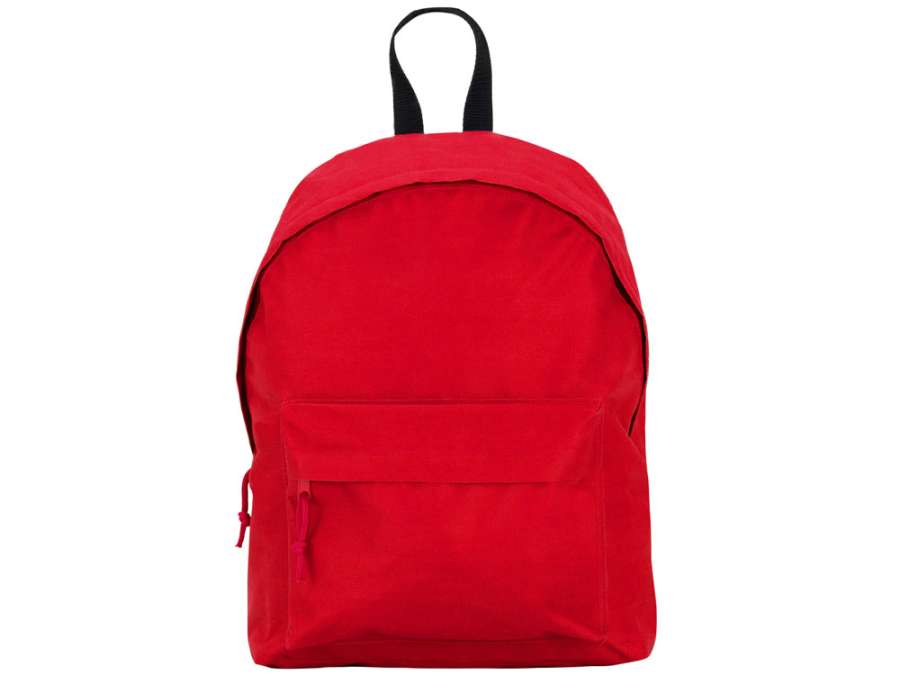 Базовый рюкзак из прочной ткани. Двойной плечевой ремень и контрастная ручка. Два кармана: основной и один спереди с молниями, клапанами и бегунками в тон